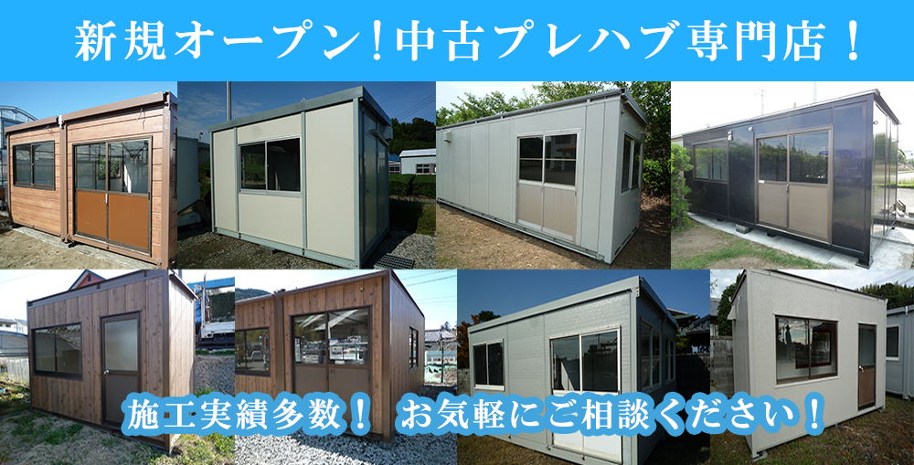 この度は中古プレハブ.comのウェブサイトをご覧いただき誠にありがとうございます。 弊社では、とりわけ事業所及び工場などビジネス用途でご利用いただける中古ユニットハウスと中古プレハブを専門的に取扱っております。 大きさ、価格、用途などからお客様に最適な中古プレハブをお選びいただけるよう豊富な在庫をご用意して、お客様のご来店をお待ちしております。中古プレハブのことならお気軽にお問い合わせください!